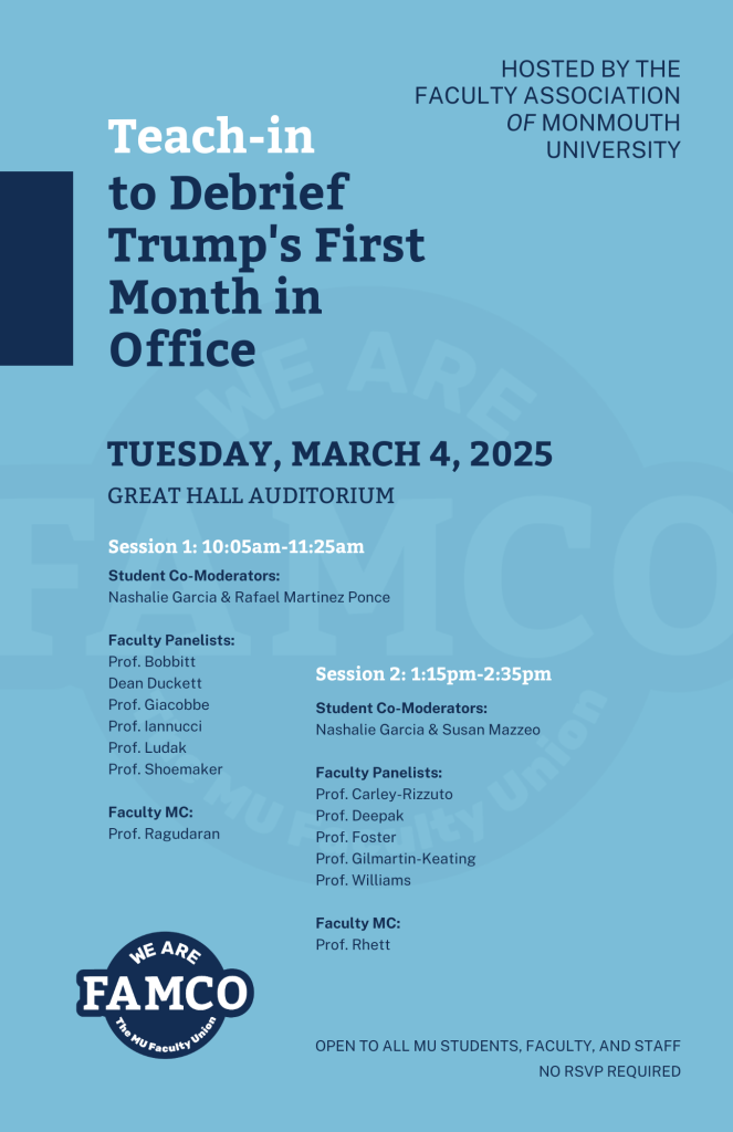 Please Join FAMCO for a Teach-in to Debrief Trump’s First Month in Office