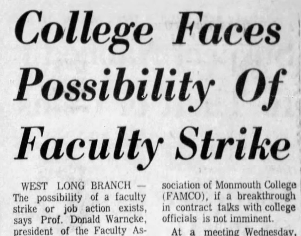 October 25, 1973: “Close to 30 Monmouth College faculty members walked picket lines yesterday to dramatize their feud with the college administration and board of trustees over this year’s contract.”